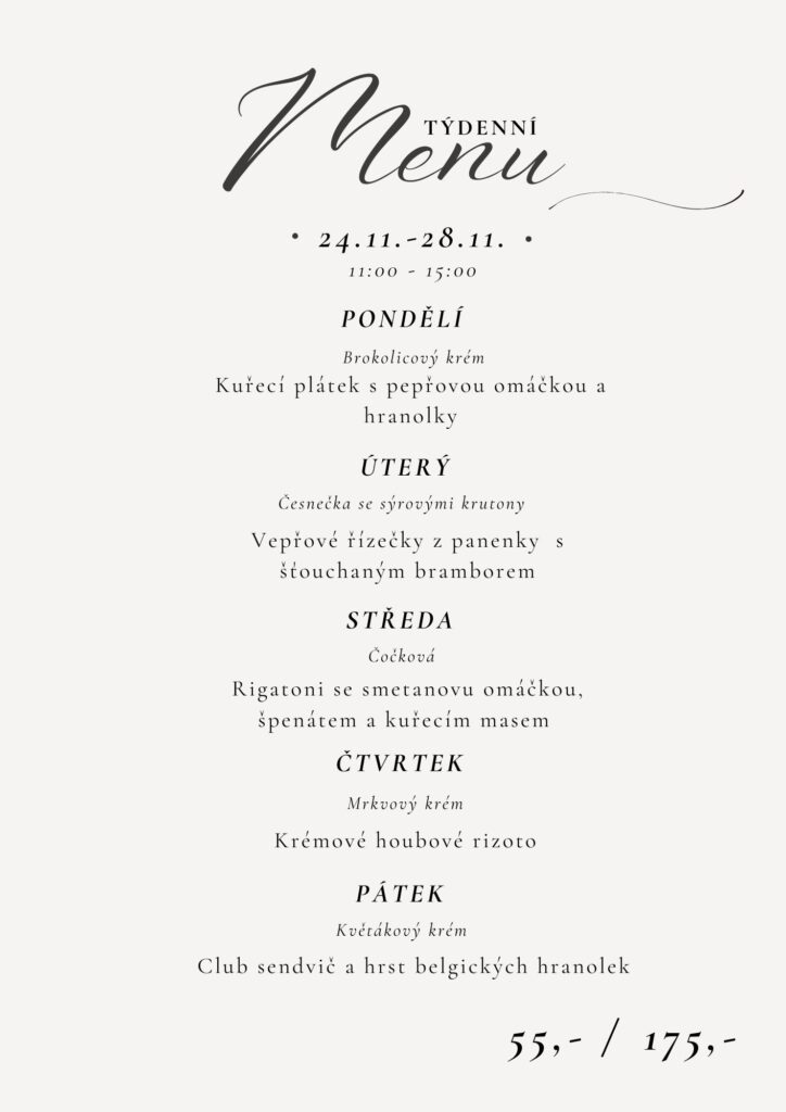 Každý den vám nabízíme polední menu připravované výhradně z čerstvých surovin.